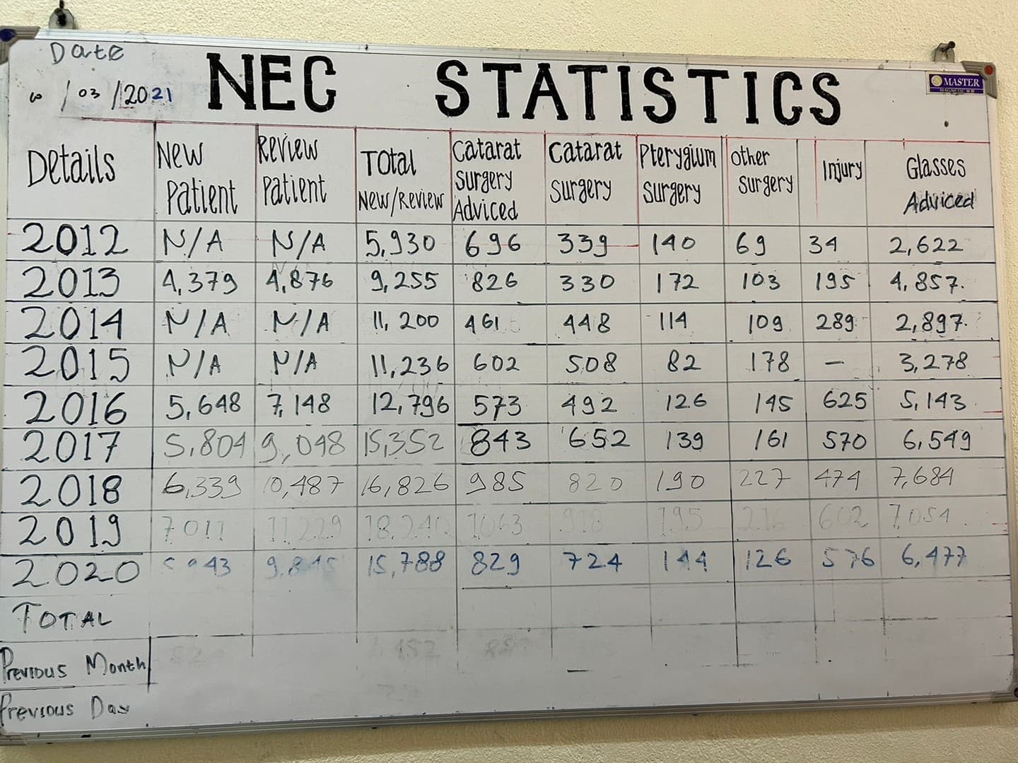 2016年に初めて現地で無料眼科診療をはじめて以来、6回にわたり診療を行ってまいりました。(NPO法人設立以降3回)診療した人数は約500名にも及びます。これまでの診療簿を集計した結果、日本同様、若い層に近視の方が多く、今後もスマートフォンやPCの普及により、近視の方が増える可能性があります。同時に眼精疲労やスマホ内斜視など新たな疾患が現れることも十分考えられます。
