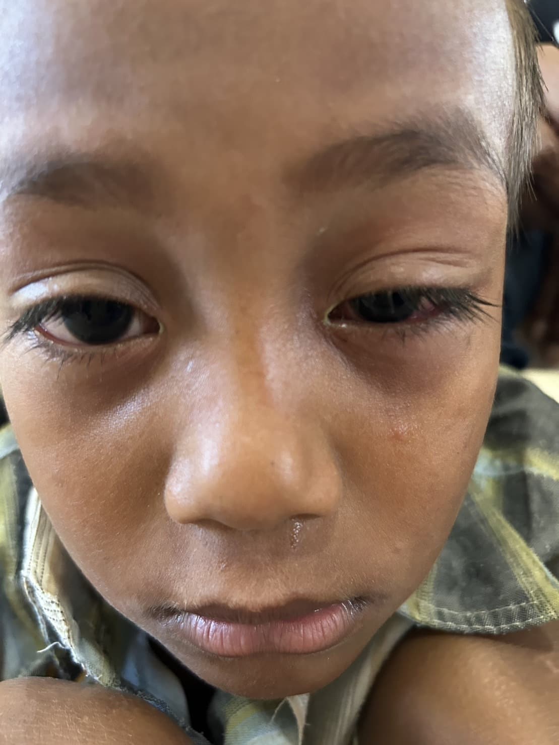 2023年8月、栄養プログラムに参加していた男の子が、眼の腫れと痛みを訴えていました。